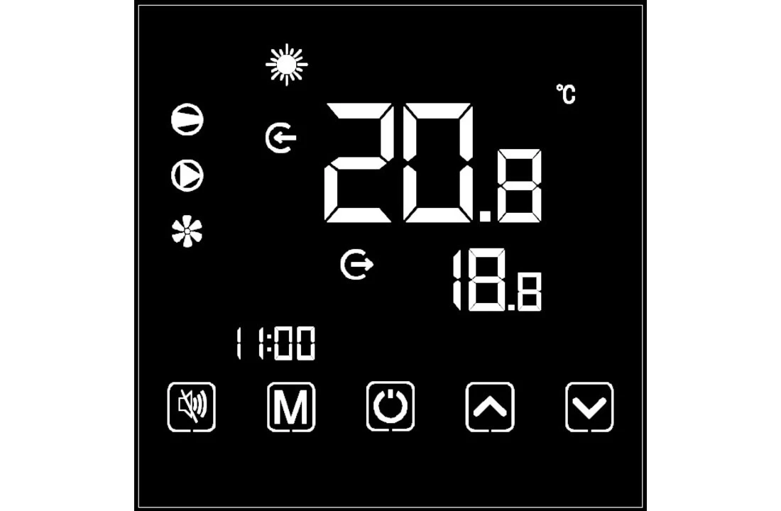 De bediening is kinderspel via het grote 4,7-inch LC-display van glas. Hier kunt u snel en eenvoudig de gewenste waarden instellen en wijzigen met behulp van de aanraakfunctie. Hier kunnen ook de afzonderlijke bedrijfsmodi ” koelen”, “verwarmen” en “automatisch” worden geselecteerd.